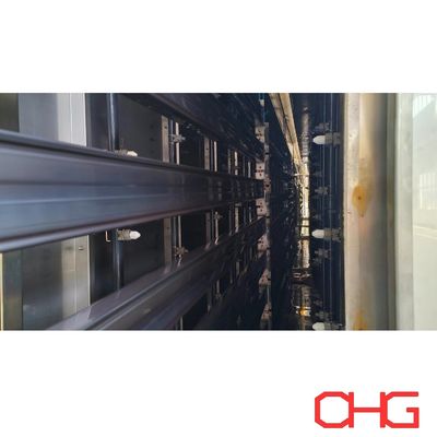 This automatic powder coating line is specifically engineered for the efficient coating of shelf components, featuring hangers that extend up to 13.5 meters in length. Designed with precision and flexibility in mind, this system ensures seamless processing even for large or intricately shaped shelving units.