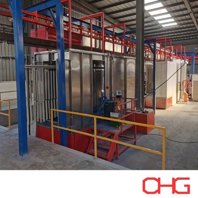 This powder coating production line seamlessly combines automated electrostatic spraying with the flexibility of manual touch-up coating, making it ideal for aluminum profiles of varying sizes, shapes, and cross-sections. Equipped with an overhead conveyor system, the line supports manual loading and unloading, allowing operators to efficiently handle complex, long, or custom-shaped profiles while maintaining a stable and continuous production flow.