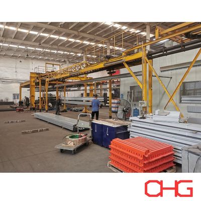 An overhead conveyor system is adopted to guarantee stable, continuous movement of the workpieces throughout the coating process, while loading and unloading operations are performed manually to maintain flexibility.